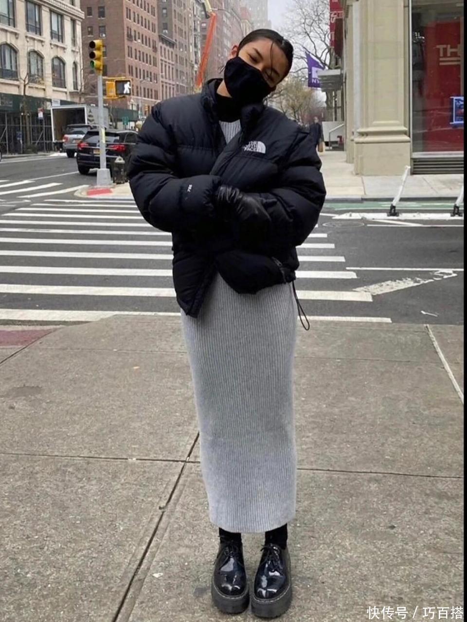 但要想把有羽绒服参与的造型穿出女人味,就需要大家多用心了,结合保暖、显瘦、遮肉需求来看,羽绒服+半身裙才是最佳选择。