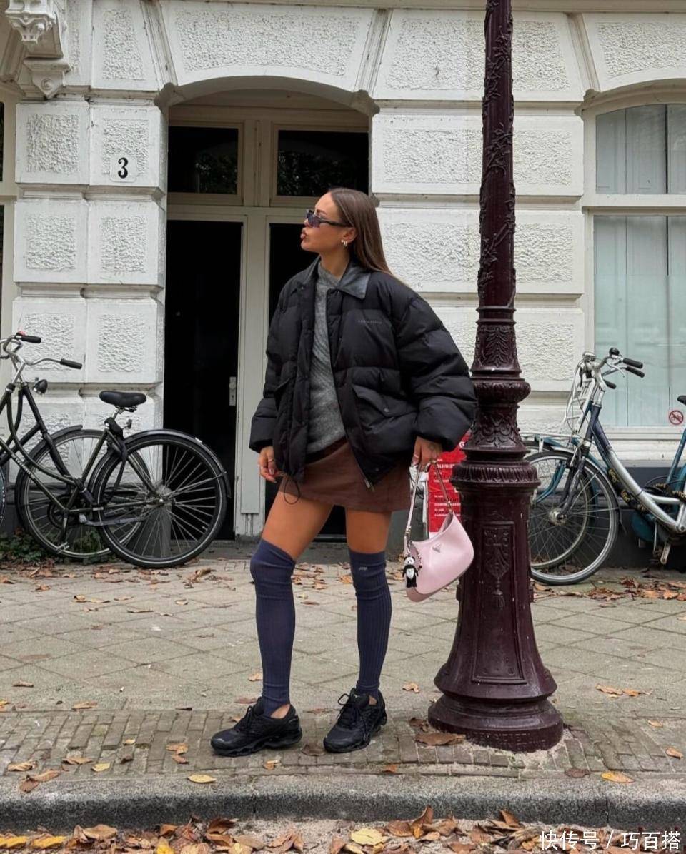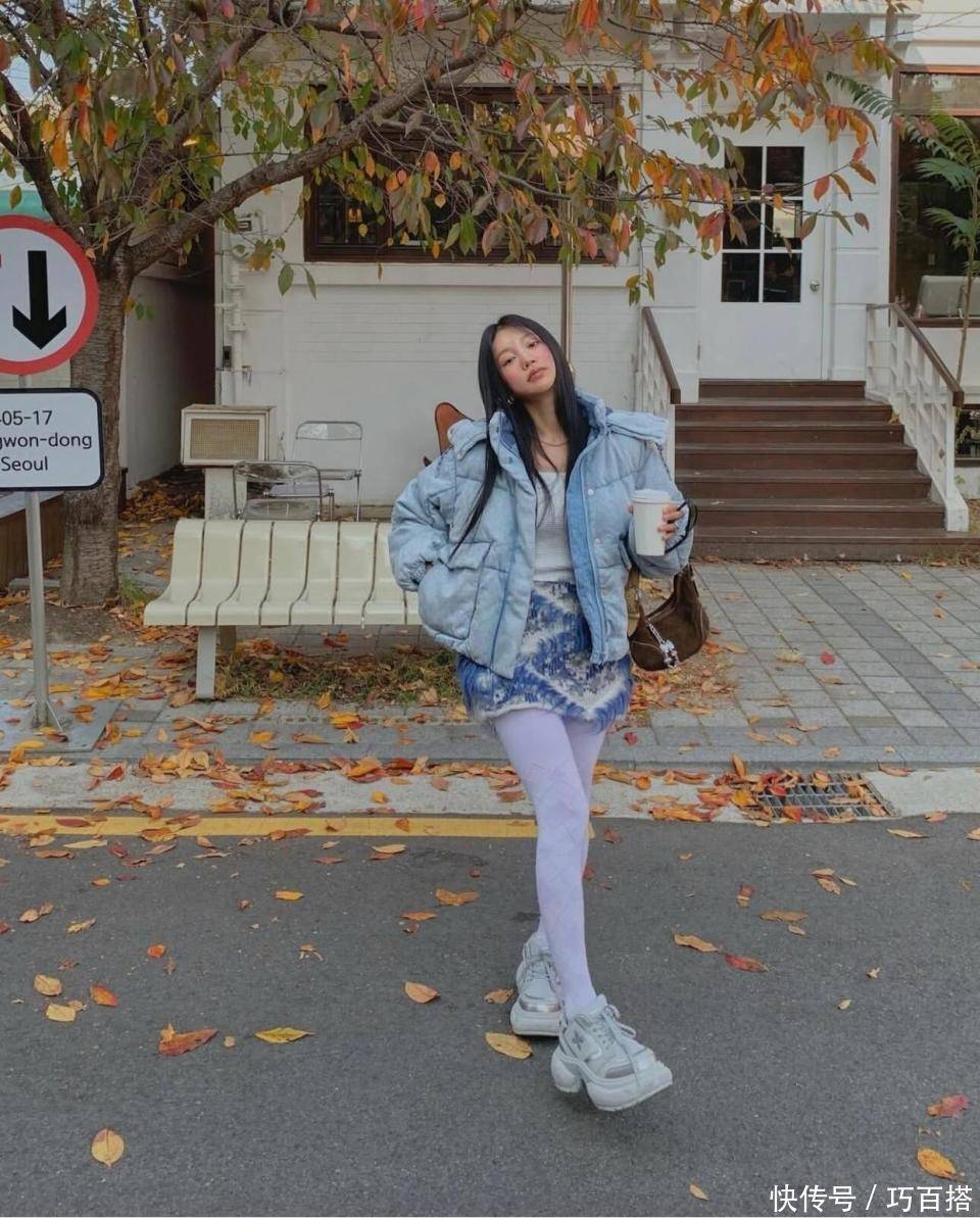 超短羽绒服与之搭配,可以展示完美腰身比,冬天也能秀出优越身形,九头身美女千万别错过,除此之外,大家也可以选择遮住屁股露出2-3cm裙边的中长款羽绒服与之搭配,形成下衣失踪的穿衣方式,女人味十足。
