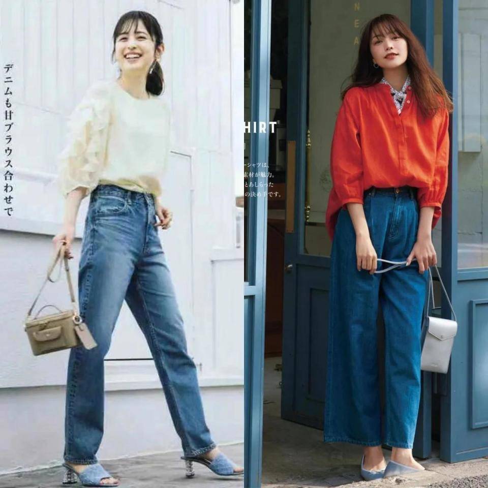 你还可以选择红色的衬衫来搭配上牛仔阔腿9分裤,这样的衣服色彩搭配还是很经典的,而且大家有没有发现穿红色的这位博主也能看得出有点小肚腩,之后选择这样的阔腿裤来穿搭,确实更遮肉。